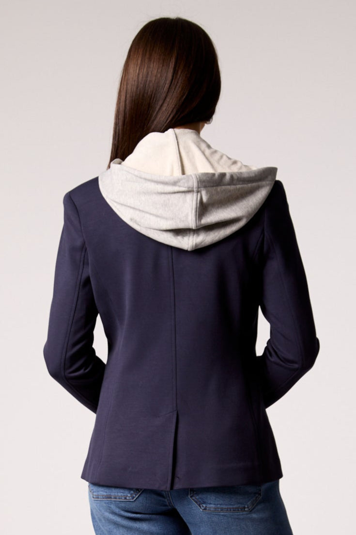 Helen Double Breasted Blazer With Removable Grey Hoodie Insert - Navy