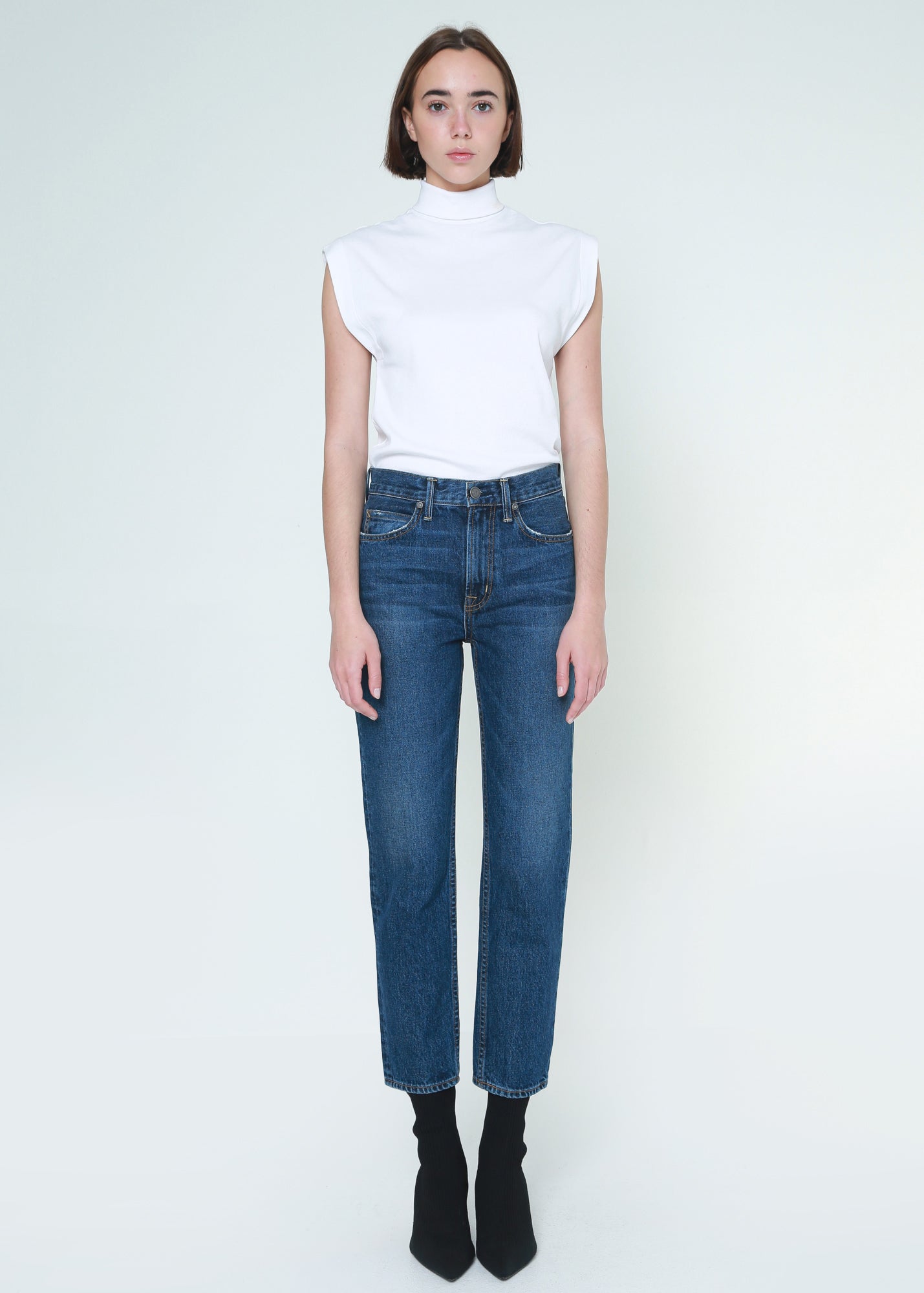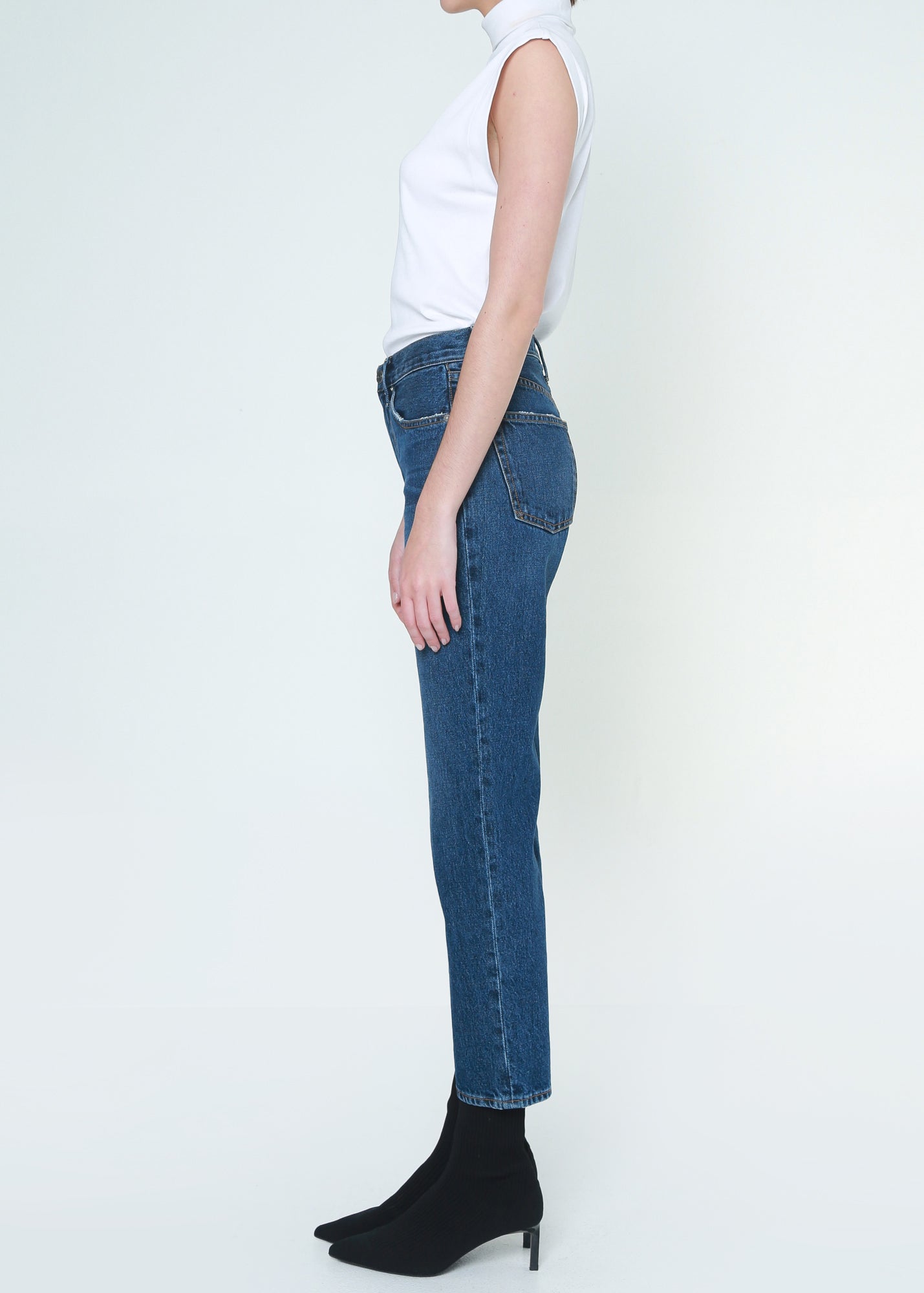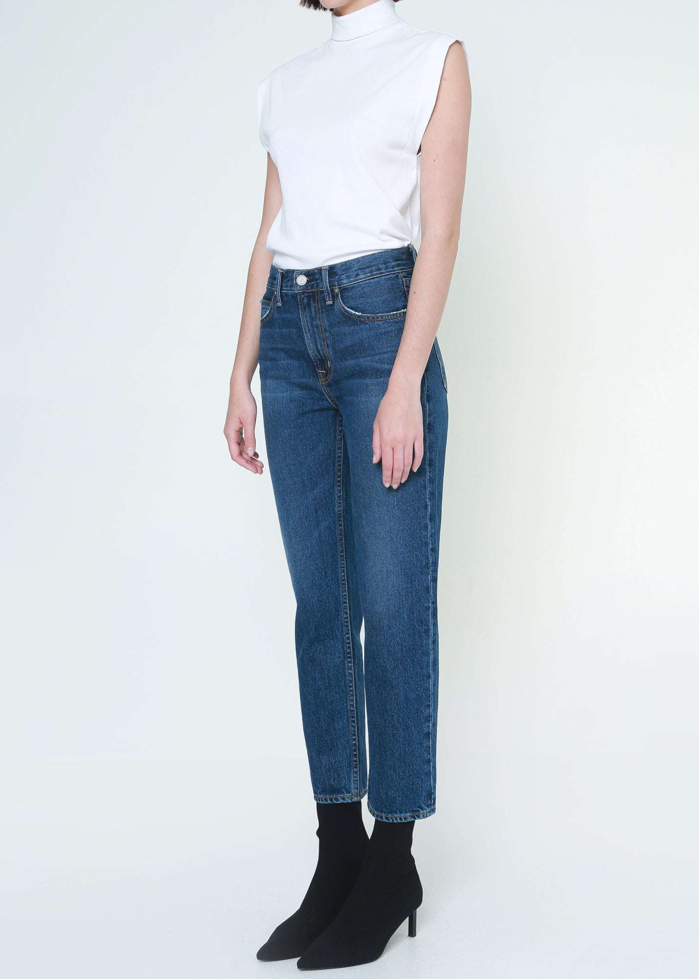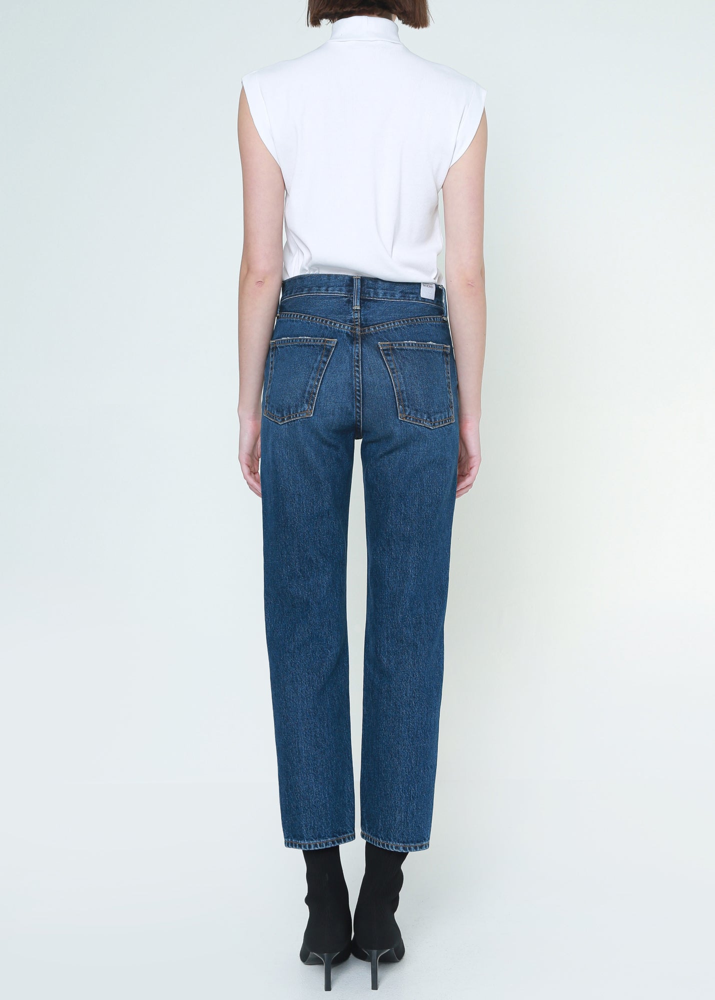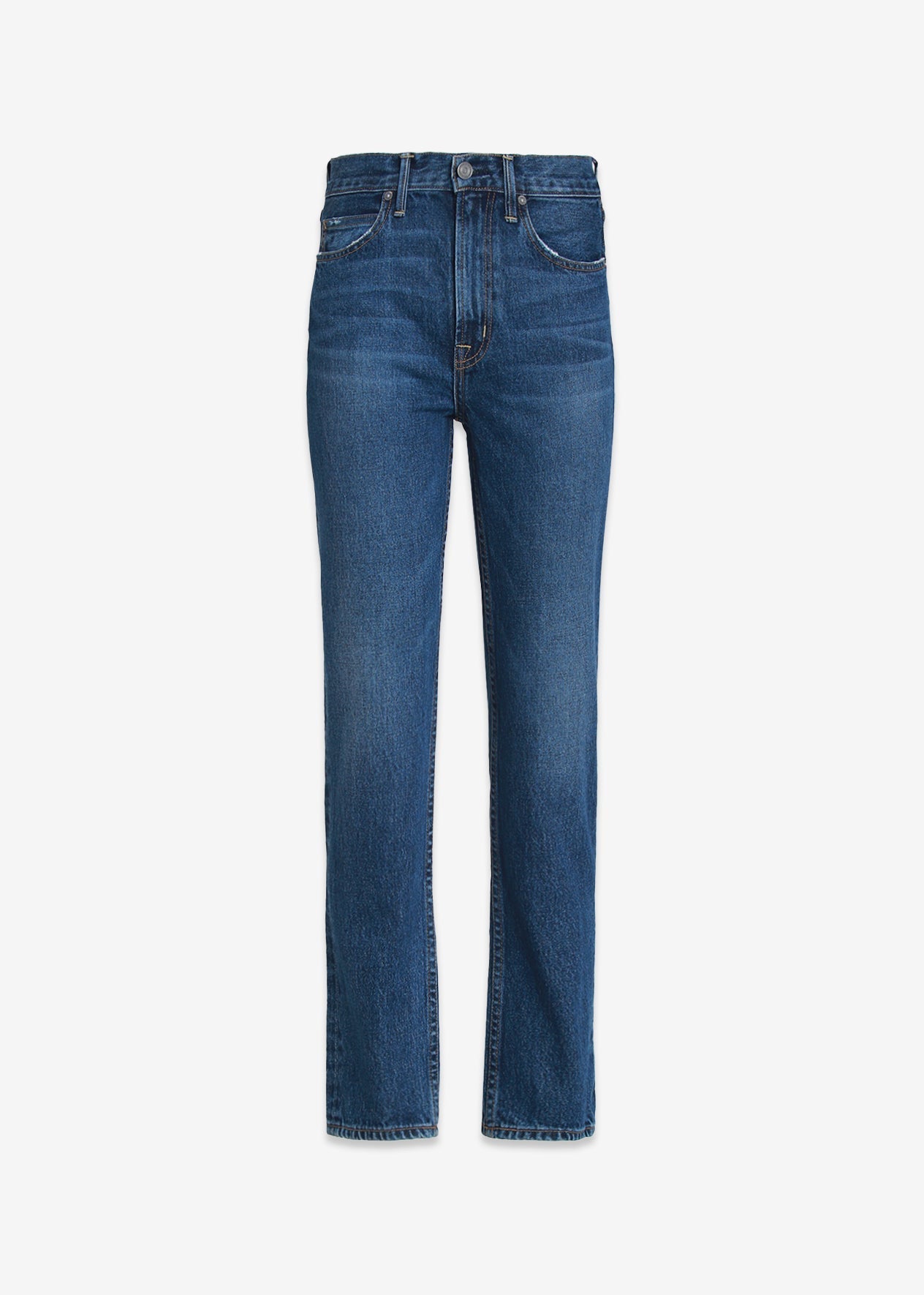 Expertly crafted with a vintage color wash, these slim-fit jeans feature a classic silhouette that gradually tapers towards the hem.