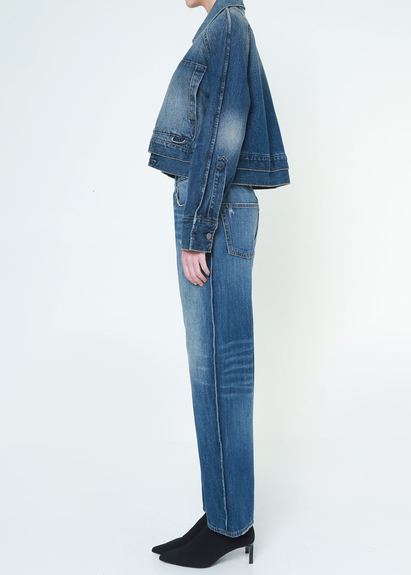 The sleek, dark wash and precise French outseams elevate the style with a refined and sophisticated touch.