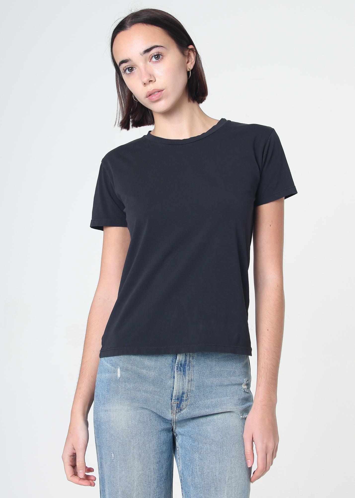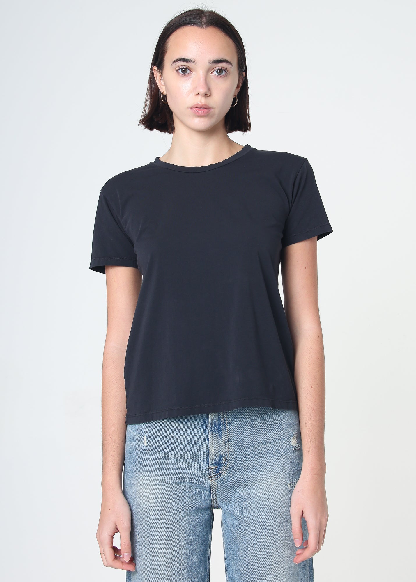 This women's crew neck t-shirt is made from a lightweight, luxury supima cotton jersey for exceptional softness and comfort. Every detail is designed for a perfect fit, wear after wear. It's made from 100% supima cotton with clean finished interior taping at the neck and center back seam.