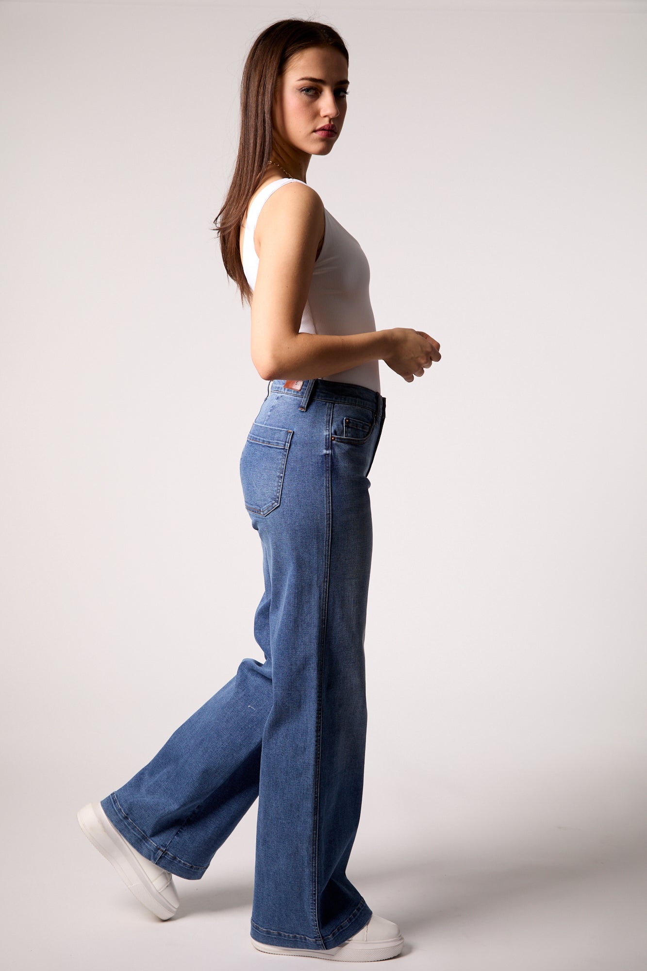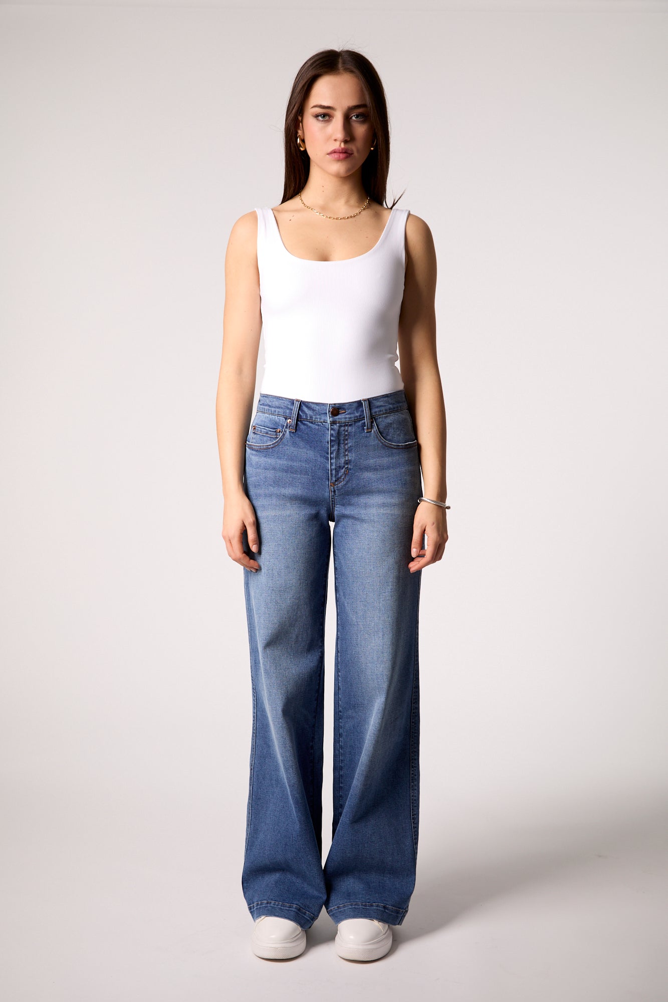 The Waverly Mid Rise Wide Leg in Madrid offers an effortless blend of comfort and style. Designed with a flattering mid-rise fit and a relaxed wide-leg silhouette, this pair is finished in a timeless medium wash that goes with everything.
